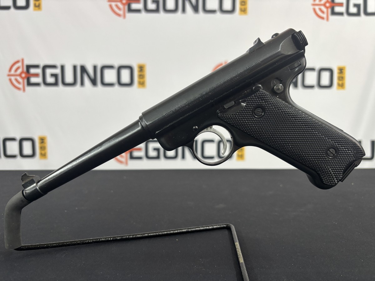 RUGER MK II .22LR PISTOL IN GREAT CONDITION. IT FEATURES A 6 INCH TAPERED BARREL, BLUED FINISH, FIXED SIGHTS AND WEARS THE FACTORY BLACK PLASTIC CHECKERED GRIPS. INCLUDES 1 FACTORY 10 ROUND MAGAZINE, NO BOX.