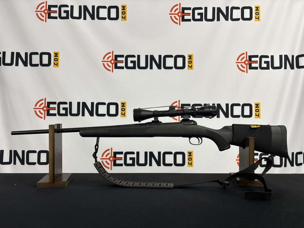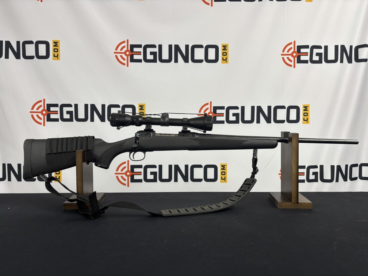 VERY GOOD CONDITION SAVAGE 11 BOLT ACTION .243 RIFLE. BLUE FINISH, SYNTHETIC STOCK, 3-9X40 NO NAME SCOPE. NO MAG.