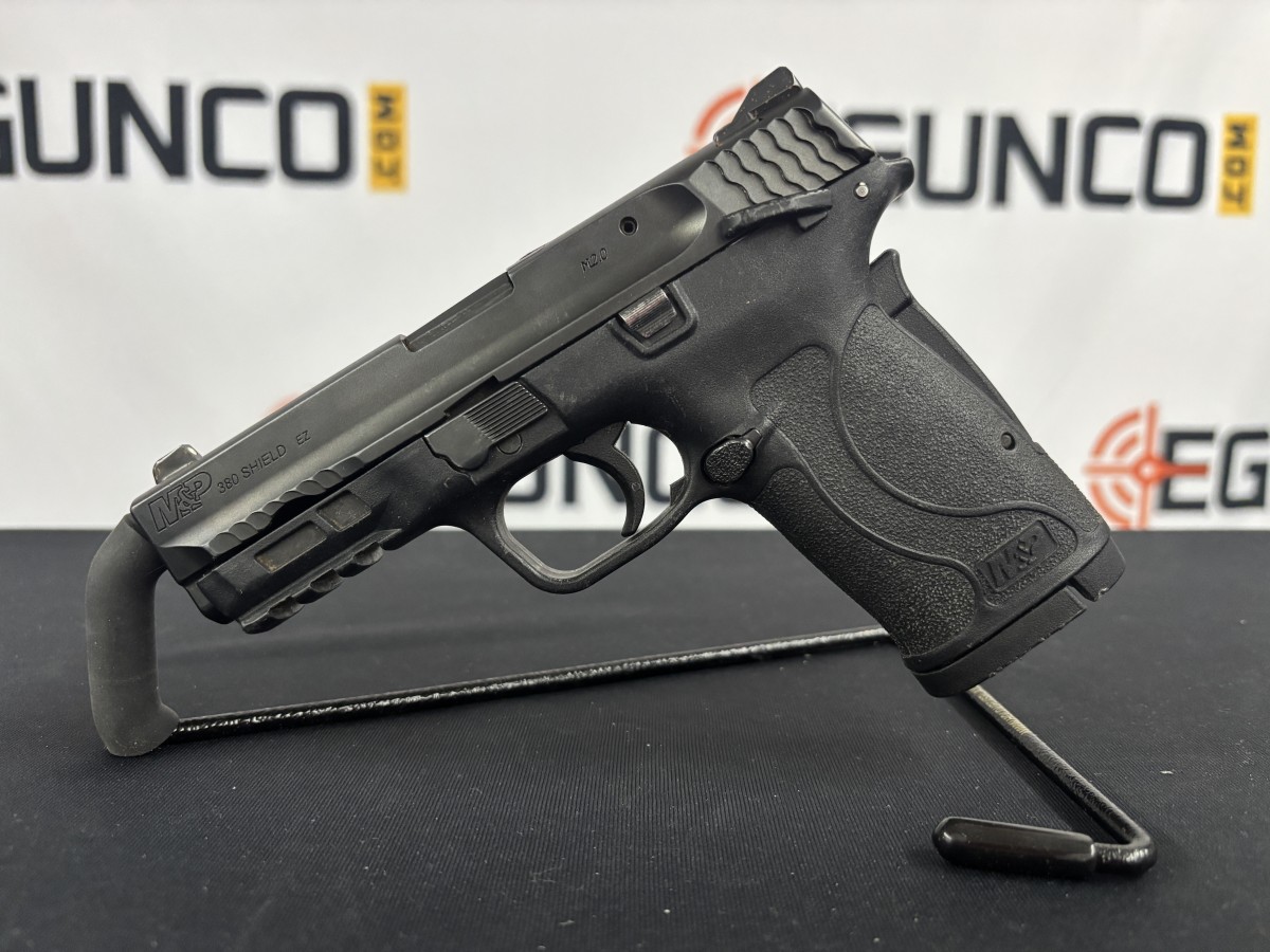 S&W SHIELD EZ 380. AMBI THUMB SAFETY, GRIP SAFETY, FIXED 3 DOT SIGHTS. 1 8 ROUND MAGAZINE. GUN HAS FINISH WEAR.